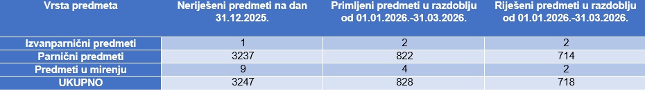 Neriješeni predmeti na dan 31.03.2022.