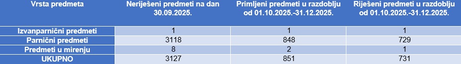 Riješeni predmeti u razdoblju od 01.07.2025.-30.09.2025.